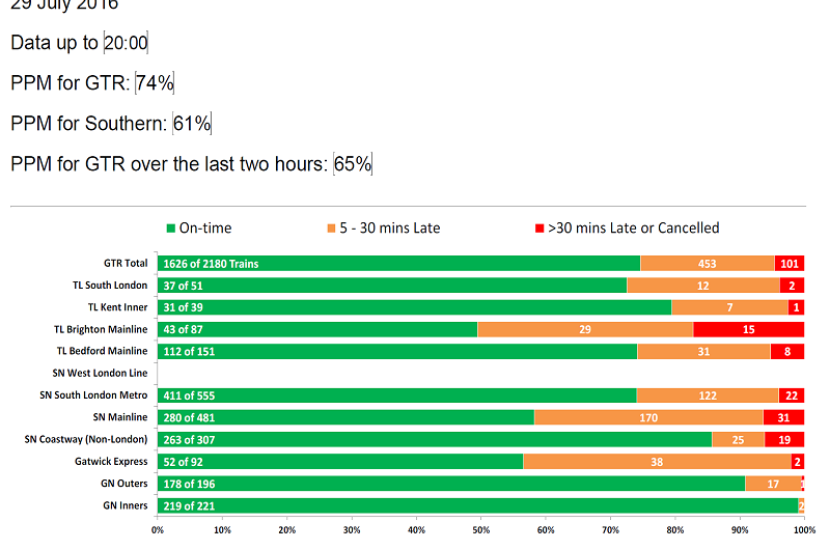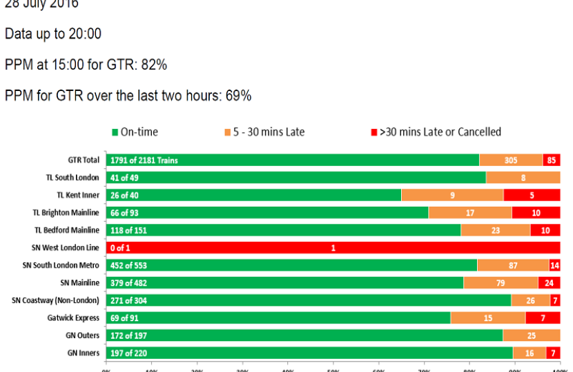 Tweet Monday, 1 August, 2016 Reports GTR Performance Update: Monday 25 July - Friday 29 JulyNo update produced for Wednesday.