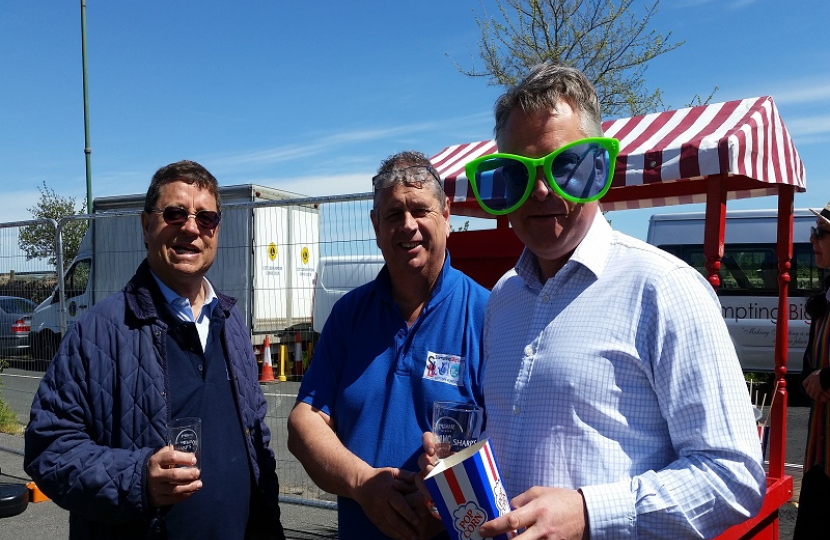 Congratulations to Sompting Big Local for an excellent May Day Family Fun Day at the Marquis of Granby where you could win some wacky sun glasses like these, pictured here with Big Local Chairman, Ray Downie, and Adur Chairman, Carson Albury.