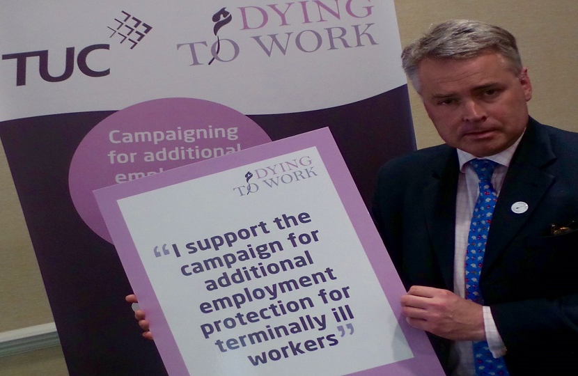 On Monday 18th April, Tim Loughton MP (East Worthing and Shoreham) attended a cross-party event in Parliament to support the TUC’s ‘Dying to Work’ campaign which is seeking to change the law to provide additional employment protection for terminally ill workers.